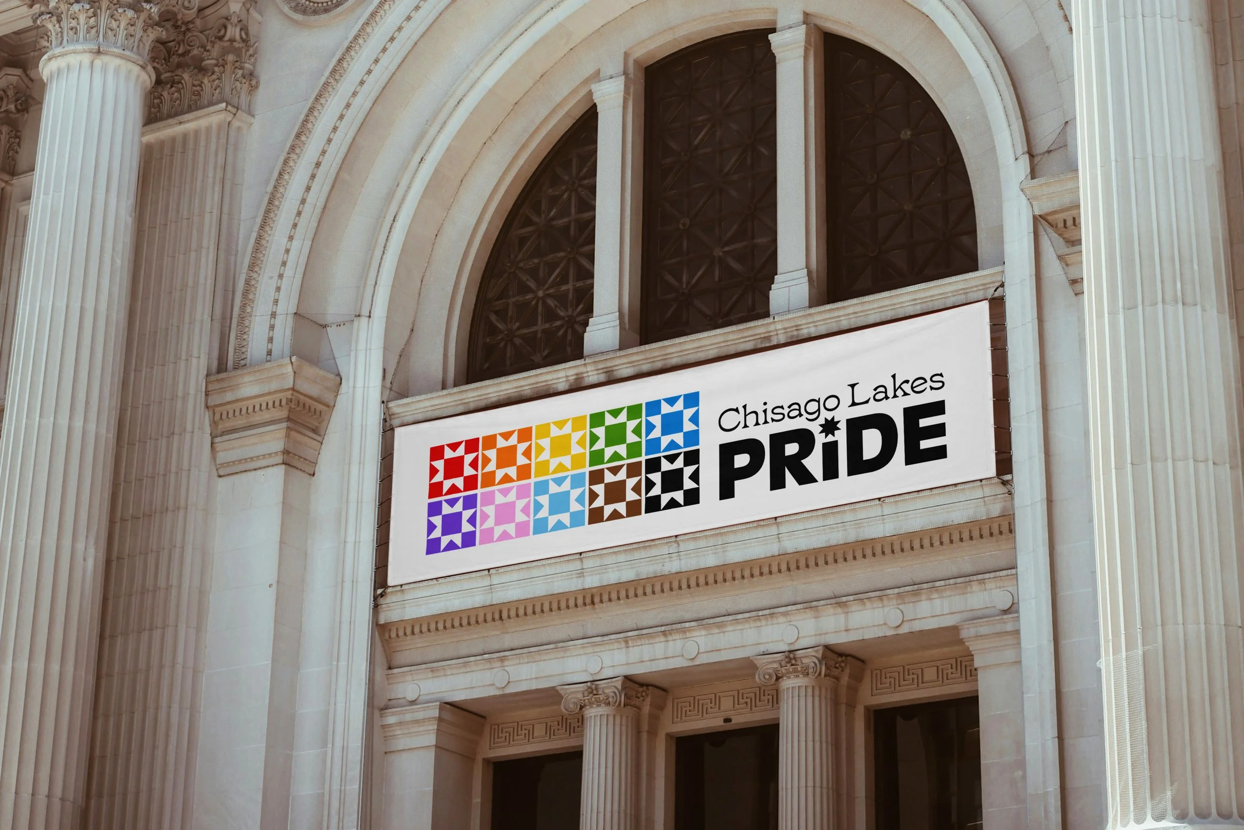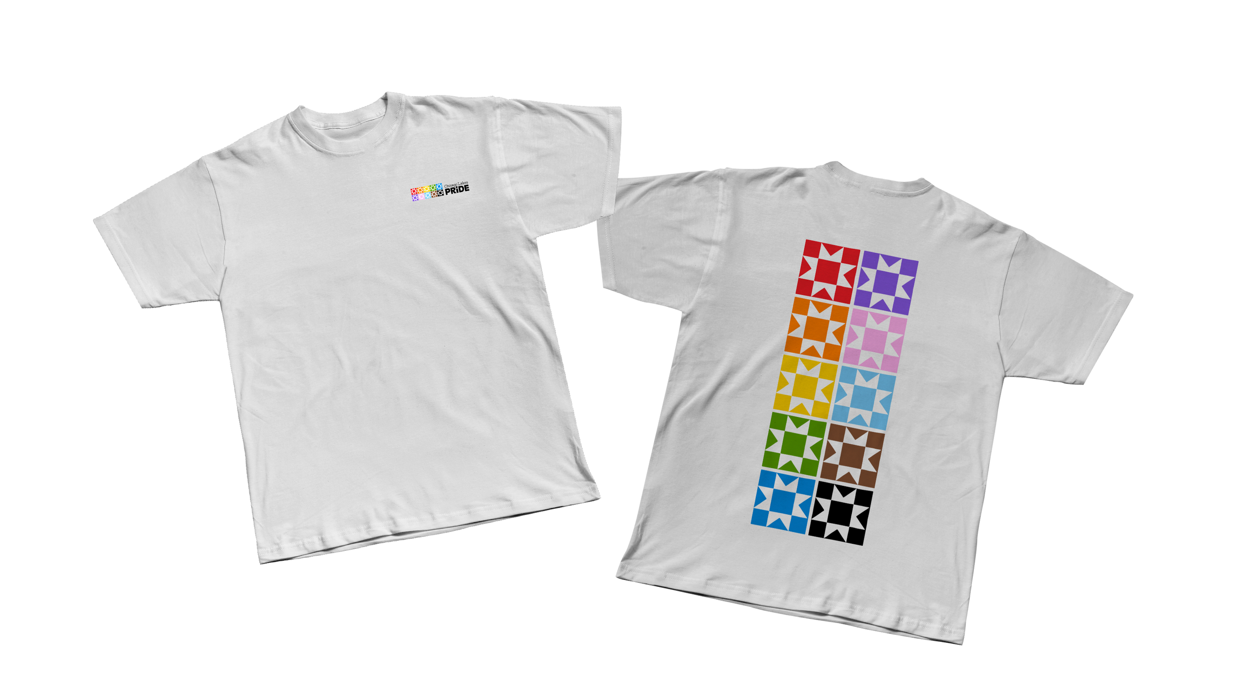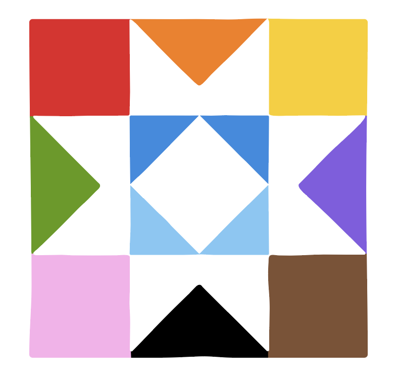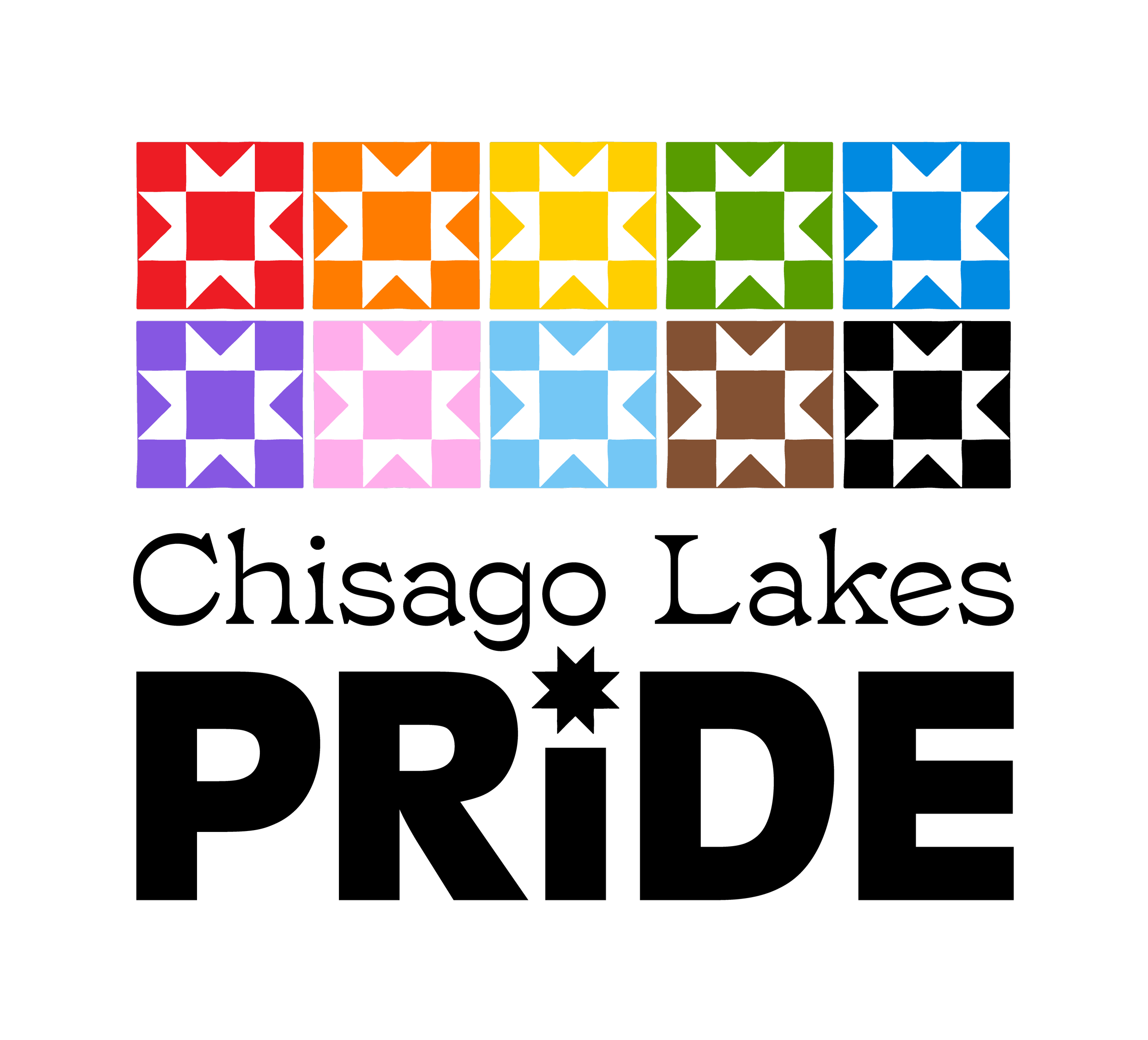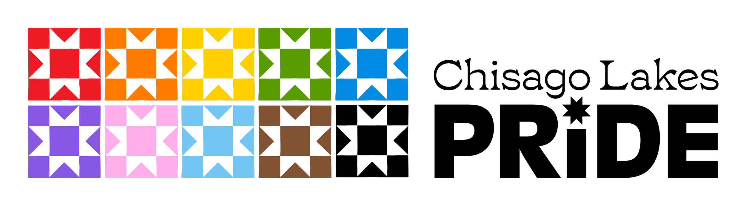 I loved this tie to community, and I thought the logo itself could be a quilt of the progress Pride colors and also use the star/quilt shape in the letter I of PRIDE. The quilt shapes themselves are hand-drawn shapes, to give it that personable and human feel while also being unified.