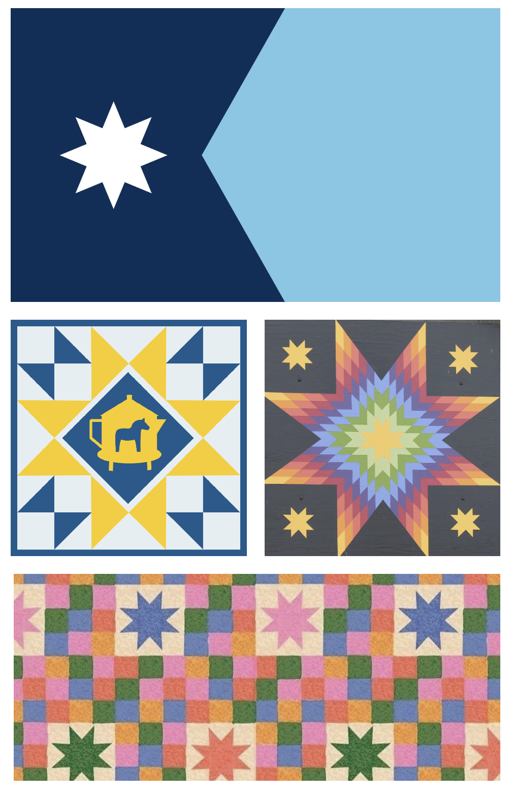 Then, I was reminded of the Swedish barn quilts in the Chisago Lakes Barn Quilt Trail (more info). I then began exploring.